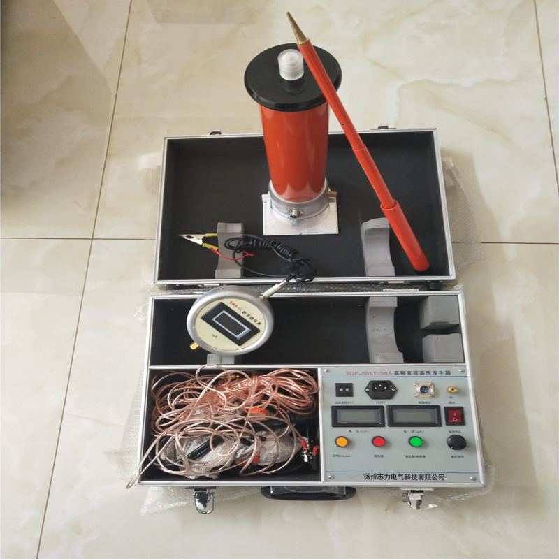 經(jīng)檢驗設(shè)備完好后,在倍壓筒高壓端接上水阻、微安表和被試品,檢查地線無誤后,可按照上述步驟進行試驗。本機有過流過壓保護功能,若試驗過程中高壓指示燈突然熄滅,表頭指示高壓消失,則是保護電路動作,關(guān)機檢查產(chǎn)生保護的原因,排除后可再次升壓試驗。升壓速度不宜太快,以每秒3-5%的試驗電壓值為宜,對于電容大的試品,電流不宜超過額定值80%。