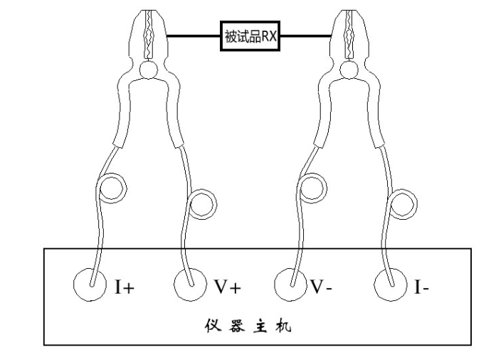 將儀器的I+、V+、V-、I-端子與被試品按圖1的辦法聯(lián)接好。這種聯(lián)接法,可消除觸摸電阻以及聯(lián)線電阻對(duì)丈量的響。