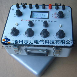 QJ60型教學用直流單雙臂電橋用來測量10-4~1111000Ω的直流中、低電阻,金屬導體的電阻率,導線電阻,直流分流器電阻。