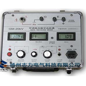 GM型系列可調高壓數字兆歐表測試電源的電壓范圍寬廣,可選擇0.25、0.5、1、2.5、5、10、15kV,也可從0V平滑調起連續調節到需要的電壓。